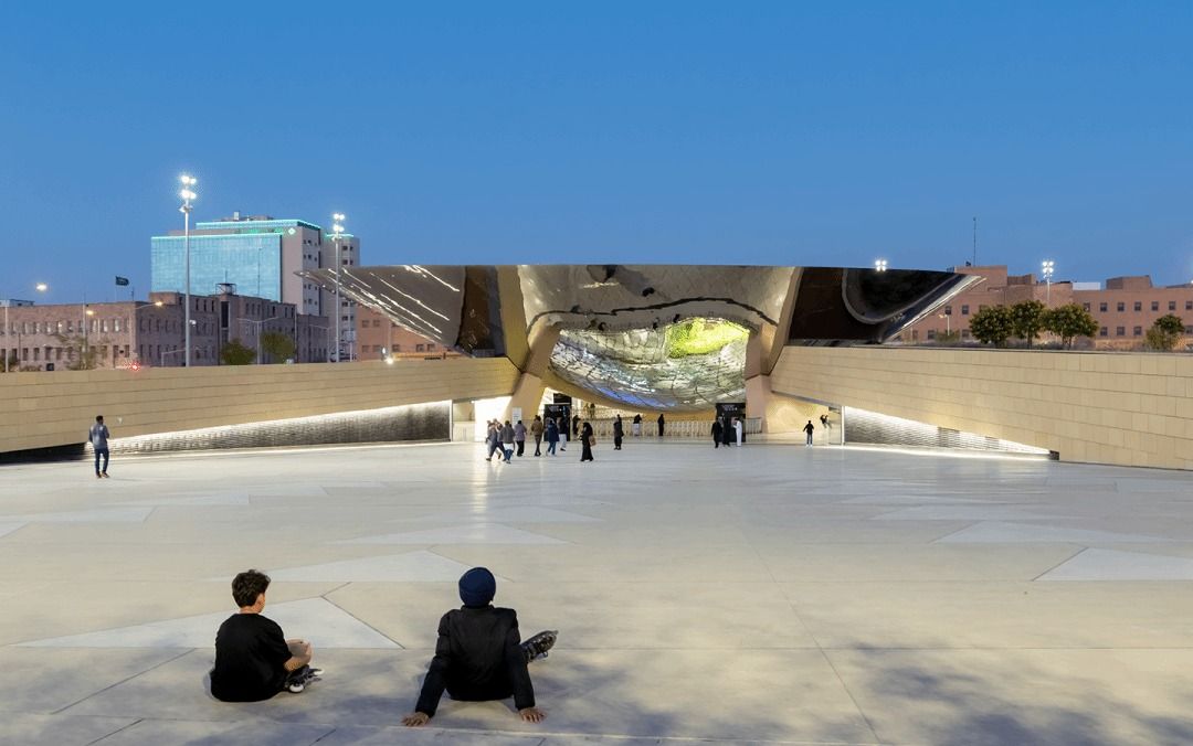 新建的地铁站位于利雅得的历史腹地,毗邻旧王宫与传统泥砖建筑群。场地紧靠重要的穆斯林开斋节祈祷场,每年成千上万的人在此聚集与散去。地铁站的尺度也因而在规划与设计阶段被慎重考量。
