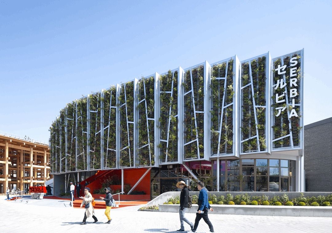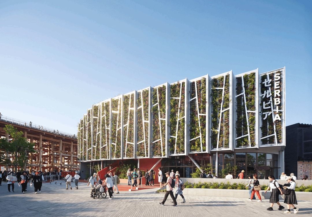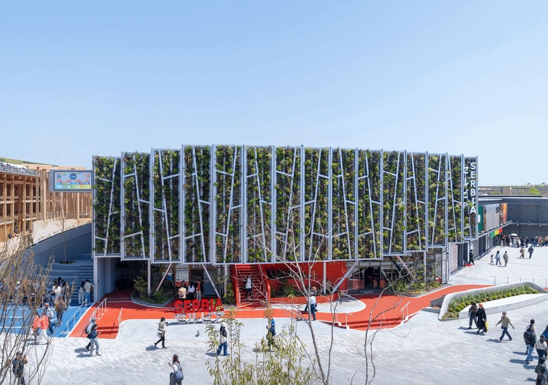 展馆的设计概念源自塞尔维亚首都贝尔格莱德的利多岛(Lido Island)。这是一座位于多瑙河与萨瓦河交汇处的天然森林岛屿,作为受保护景观得以完整保留。在贝尔格莱德高密度城市肌理之中,它形成了一种罕见而鲜明的对比—— 一片被城市环绕的自然绿洲。岛屿的形态与展馆场地高度相似,从而强化了场所与建筑之间的概念关联。