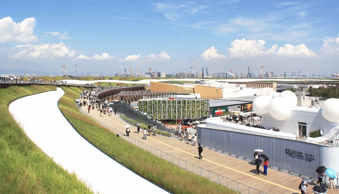 展馆位于世博园区西侧入口,世博会整体规划由藤本壮介负责。展馆正对并毗邻“大屋根”(Grand Ring),占据高度可见的显要地段,成为迎接访客的重要界面。其区位使其成为来宾进入园区后最先接触的展馆之一,在第一时间建立鲜明印象,并作为通往整体世博体验的门户。