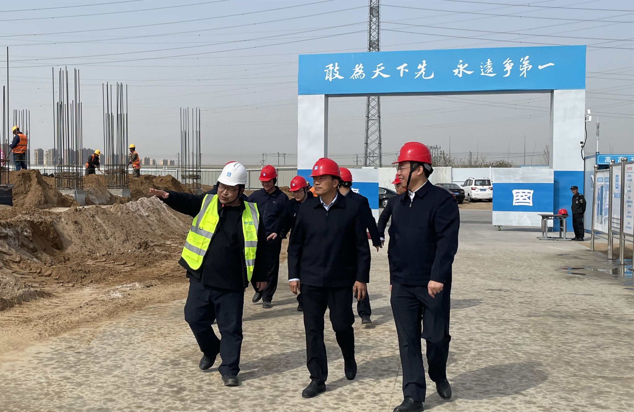 贾少鑫实地察看中建三局、中建五局负责的一、二标段施工现场,重点查看在建的食堂基坑地下水处理情况,听取项目负责人工作汇报,详细了解当前施工进展、质量管控及安全生产措施落实情况。